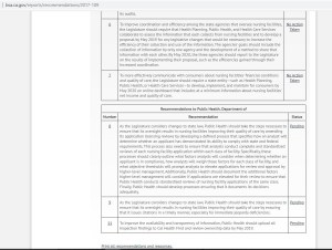 Everyone would agree that nursing home residents individually and as a group are vulnerable and are dependent on other people for their health, care, and well-being. So I came across the below status update by the California State Auditor about recommendations (apparently made in 2018) for improved oversight of substandard nursing home conditions, and it is with great disappointment that apparently none of the recommendations have actually come to be.